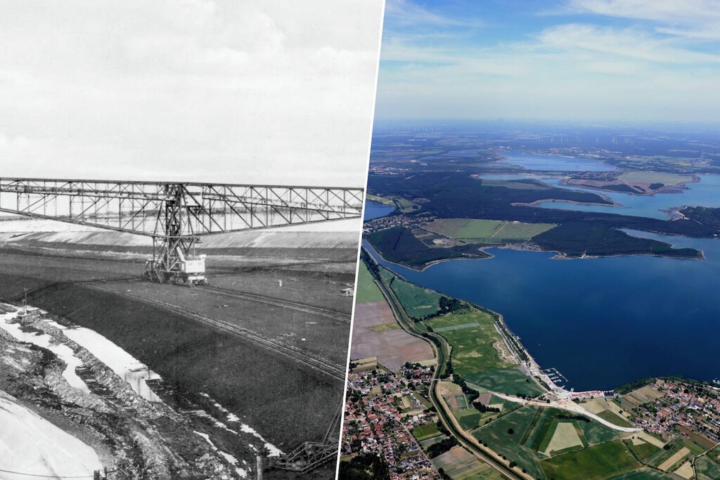 Lo ves mejor en la foto que ilustra este artículo: el antes y el después: lo que empezó como una red enormes minas de carbón a cielo abierto se está transformando en un complejo sistema de más de 20 lagos artificiales interconectados, un auténtico paraíso vacacional para navegar o dar una vuelta en bici. De hecho, ya puedes reservar una escapada allí.