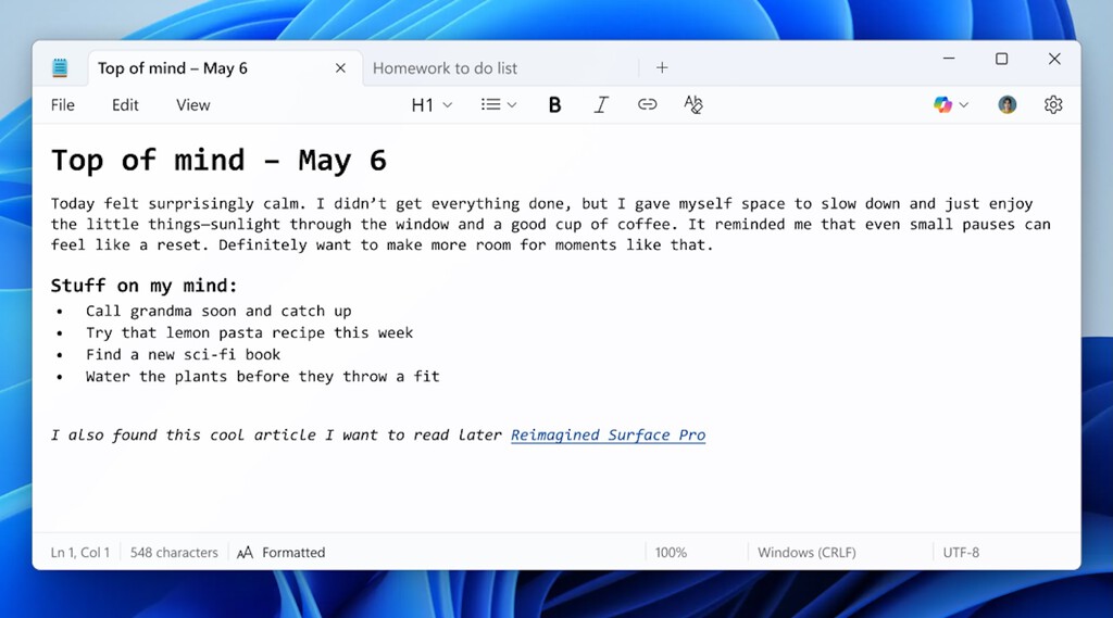 Sin embargo, la reciente decisión de eliminar WordPad a partir de Windows 11 24H2 dejó a Microsoft en una situación en la que el Bloc de Notas ha comenzado a recibir algunas de las funciones que permiten cubrir el vacío que se ha generado en el ecosistema.