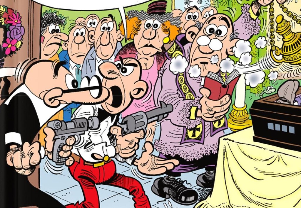 Y el hachís. La legalización de la marihuana fue uno de los debates clave de la sociedad española en 2014, año al que pertenece esta historia, e Ibáñez, fiel a la tendencia que estaban siguiendo las últimas aventuras de Mortadelo, lo abordó con su estilo característico. Ibáñez no temió en estos años meterse en temas algo más controvertidos que acercaron a los agentes de la TIA a la sátira social: ‘El tesorero’, de 2015, sobre la corrupción en el PP, es un buen ejemplo, y posiblemente este ‘Hachís… ¡Salud!’ siga la misma línea.