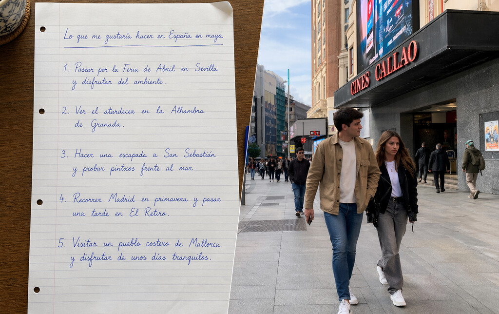 Pensar antes de dibujar. Una de las novedades que OpenAI intenta destacar con más fuerza es que este es su primer modelo de imagen con capacidades de razonamiento. Traducido al terreno práctico, la compañía sostiene que, cuando se elige un modelo con “thinking” dentro de ChatGPT, el sistema puede tomarse más tiempo, estructurar mejor la tarea, apoyarse en la web para buscar información actualizada y revisar sus propios resultados antes de entregar la imagen. Y lo hemos probado, pidiéndole la imagen de dos personas caminando por la Gran Vía, en Madrid, a la altura de Cines Callao, y unos apuntes sobre actividades para realizar en España durante mayo. Se trata de las imágenes que podemos ver en la imagen de portada.