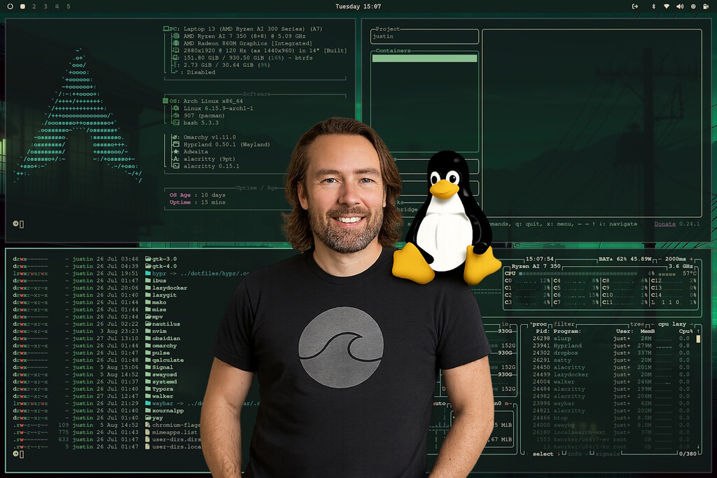 Pero aquella ruta de escape no ha sido más que el prólogo para él: ahora ha dado el salto a Omarchy, su propia distribución Linux, basada en Arch Linux y el gestor de ventanas en mosaico Hyprland, concebida, según explica, para canalizar el impulso actual de Linux y convertirlo en una experiencia refinada, lista para usar desde el primer momento.